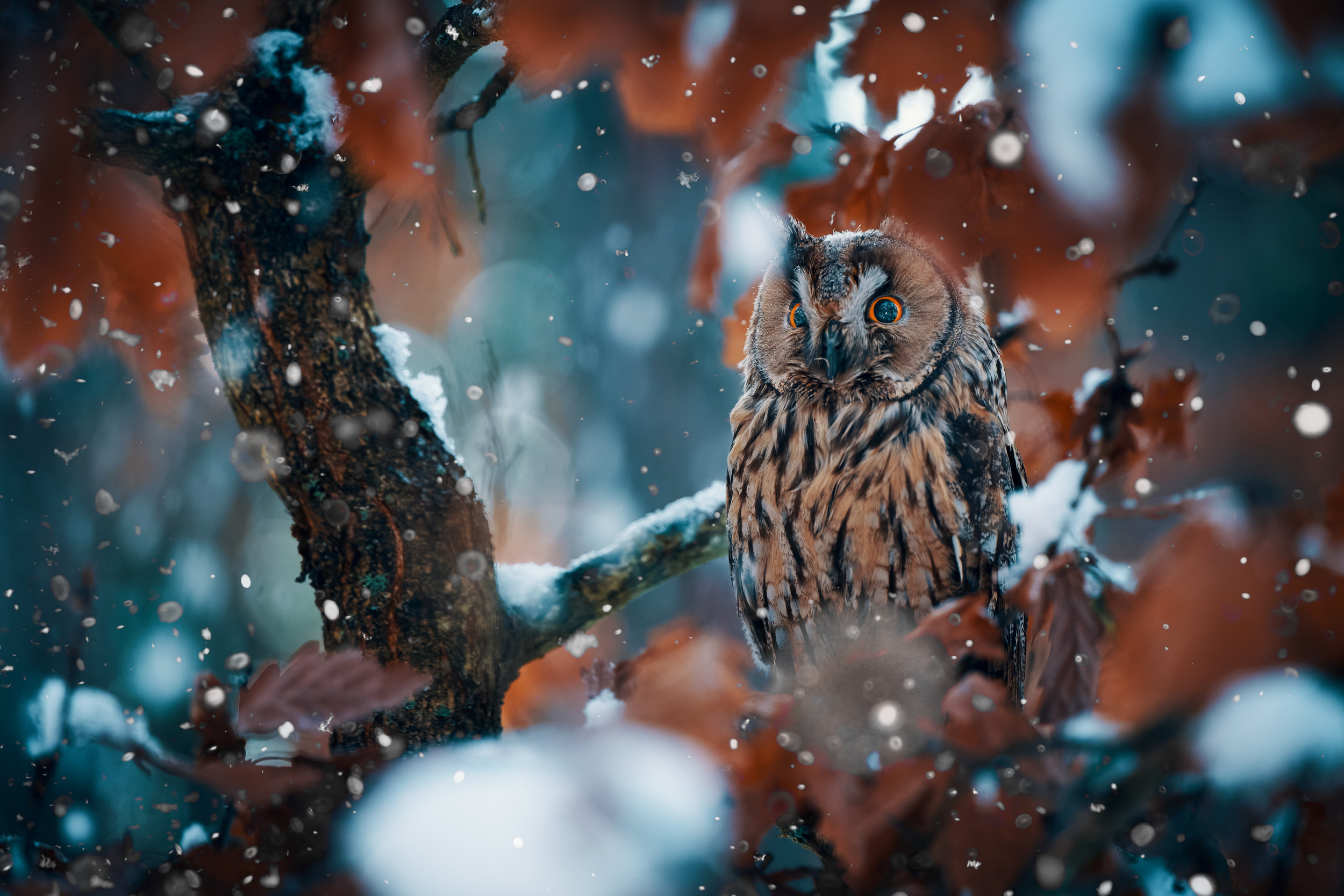 ‘Long eared owl’in snowfall' by Lukas Furch